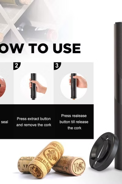 Solo debes colocarlo sobre la botella, presionar el botón y en segundos extrae el corcho automáticamente.